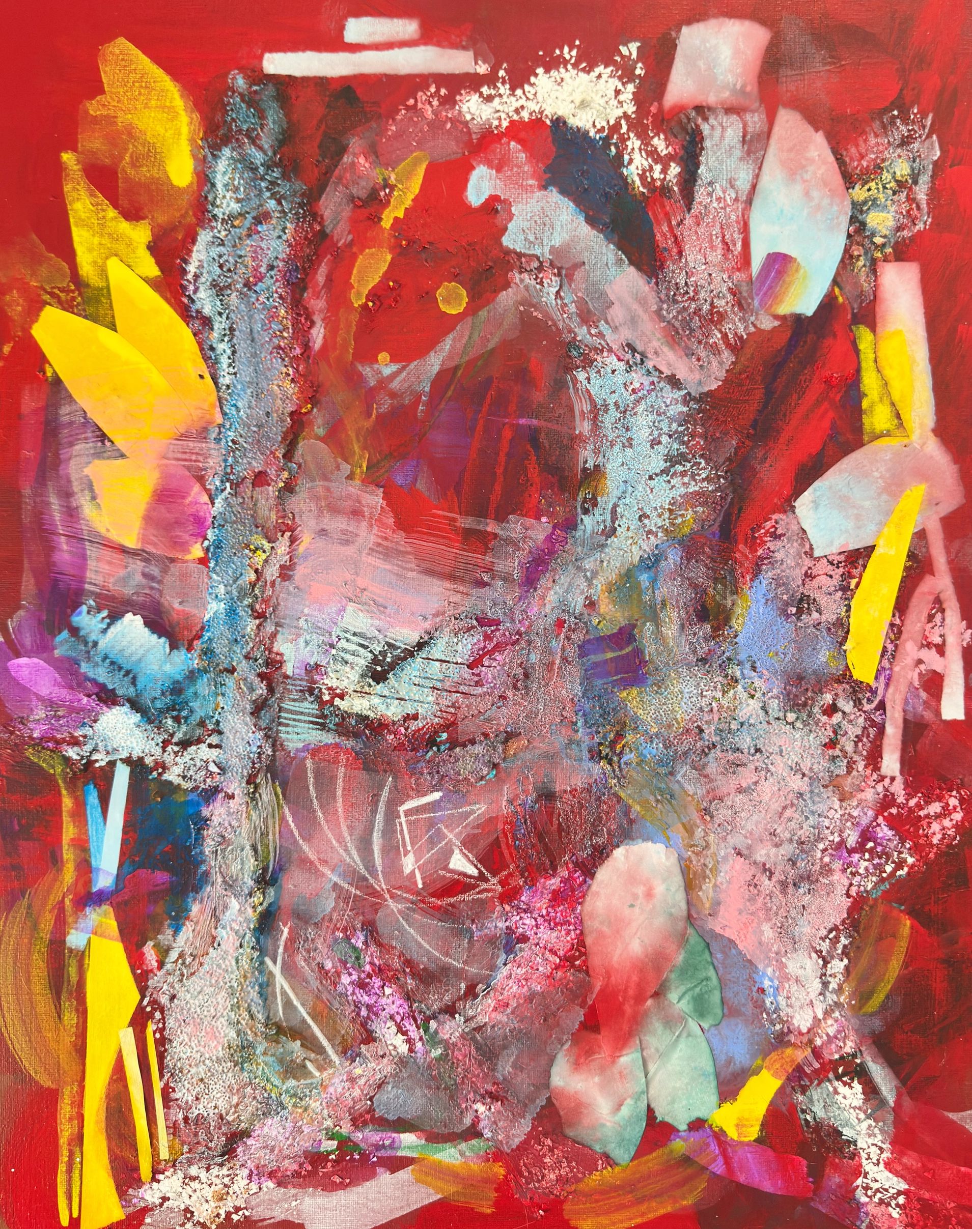 Acrylic, Hanji Collage, oil pastel, pigment on wooden panel
